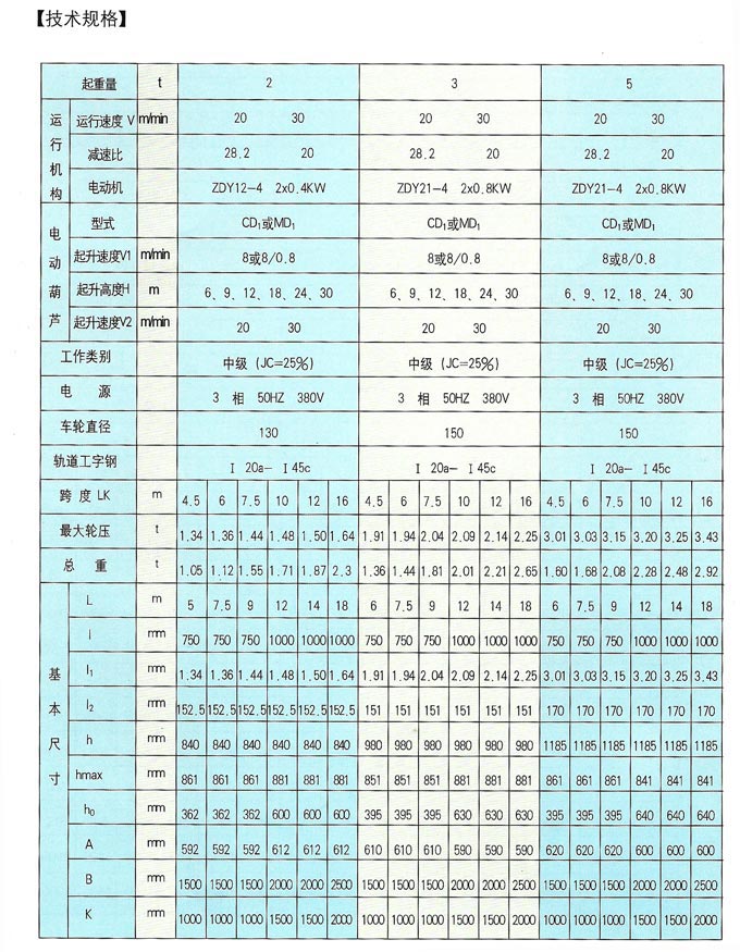 LX型電動單梁懸掛橋式起重機是按國家*新標準設計制造的,與CD、MD等型號的電動葫蘆配套使用,成為有軌運行的輕小型起重機,其適用起重量為0.5—5噸,適用跨度為3—16米,工作環境為-20℃~+40℃范圍內。本產品為一般用途起重機,多用于機械制造裝配、倉庫、山洞等場所。 起重機主要有橋架(金屬結構)、電動葫蘆、運行機構、電器設備等四部分組成。