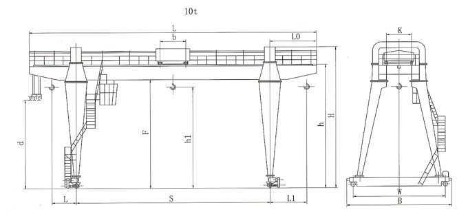 10~50t雙主梁門式起重機主要用於料場、露天倉庫等場合,可進行裝卸及物料搬運工作。