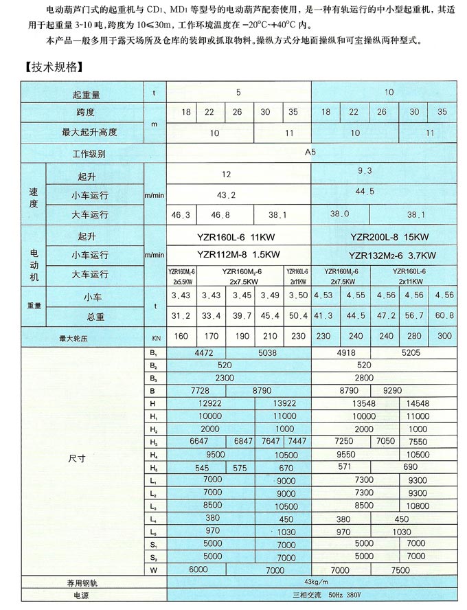 5~32/5t單梁門式起重機主要用於料場、露天倉庫等場合,可進行裝卸及物料搬運工作。