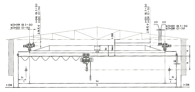 LX型電動單梁懸掛橋式起重機是按國家*新標準設計制造的,與CD、MD等型號的電動葫蘆配套使用,成為有軌運行的輕小型起重機,其適用起重量為0.5—5噸,適用跨度為3—16米,工作環境為-20℃~+40℃范圍內。本產品為一般用途起重機,多用于機械制造裝配、倉庫、山洞等場所。 起重機主要有橋架(金屬結構)、電動葫蘆、運行機構、電器設備等四部分組成。