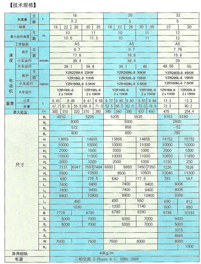 本起重機屬A5(中級)工作級別,并帶有防雨罩可供選用。
